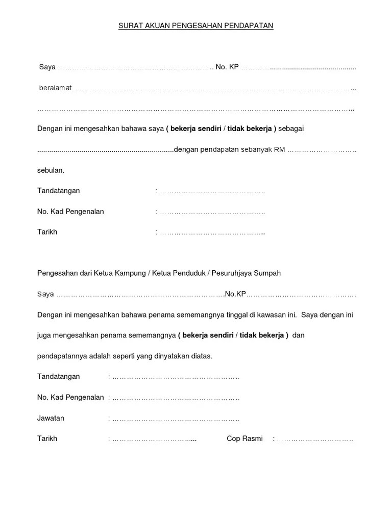 Format contoh surat akuan bekerja yang baik 2019. Muat turun percuma surat pelepasan perjalanan. Contoh surat pelepasan kerja sendiri. Contoh surat rasmi pengesahan pendapatan bekerja sendiri .